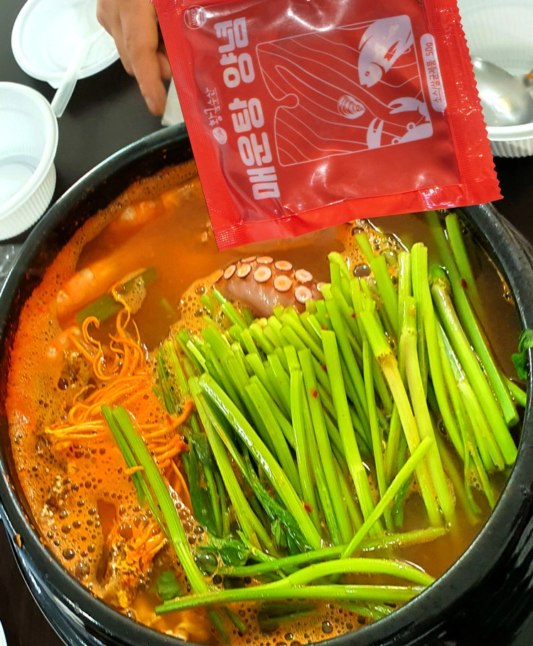 황복보양탕을 매운탕으로 드실려면, 지리육수를 넣으신후